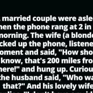 A married couple were asleep when the phone rang at 2 in the morning. The wife (a blonde) picked up the phone, listened for a moment, and…
