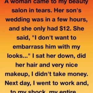 She came into my salon that morning with swollen eyes, trembling hands, and a handful of crumpled bills. “My son’s wedding is in a few hours,” she…